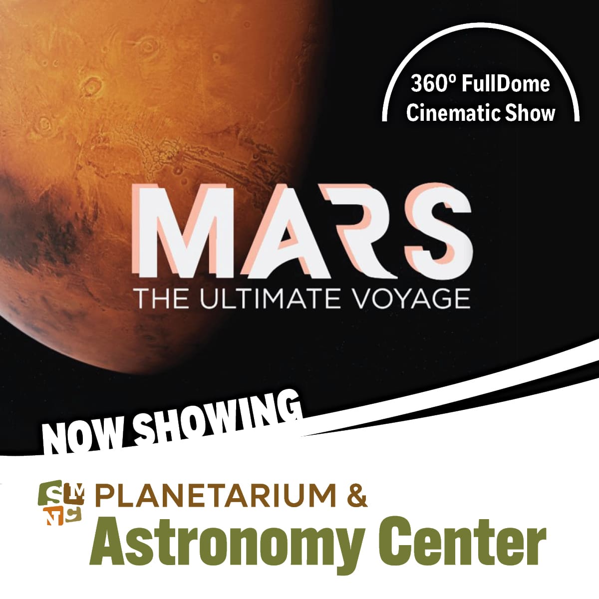 Mars: The Ultimate Voyage FullDome Cinematic Show* Inside the Mission to Mars ◆ Saturdays & Sundays at 3 PM Ages 8+, 45 mins SM&NC Members: $8/seat Non-Members: $12/seat + Daily Admission This immersive look at humanity’s first mission to Mars reveals the high-stakes challenges of deep-space travel, the risks astronauts must overcome, and the ingenious…