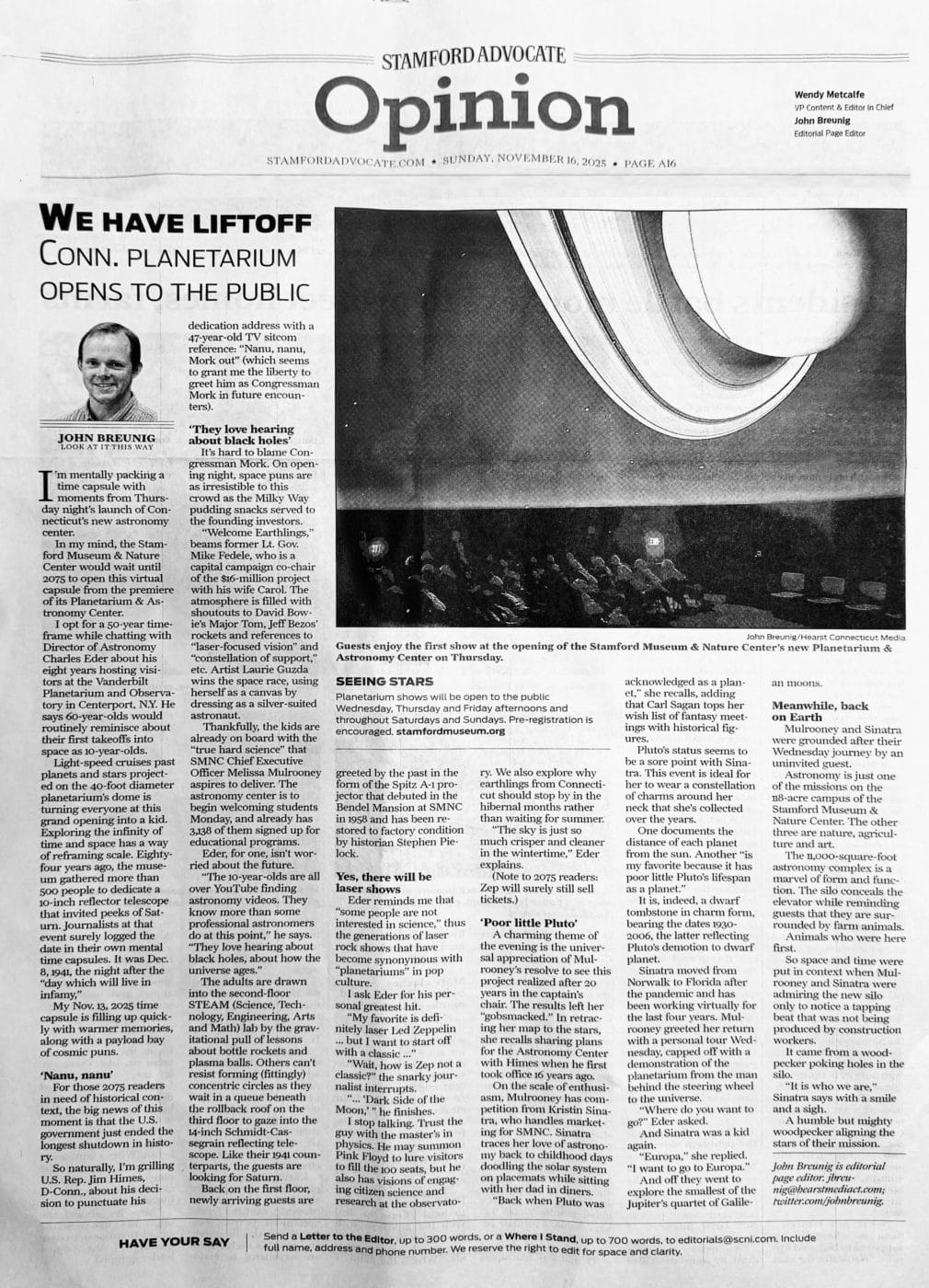 John Breunig (opinion): We have liftoff. CT planetarium opens to public